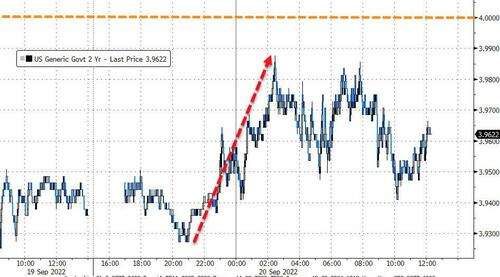 对货币政策更为敏感的2年期美债收益率一度逼近4%,刷新2007年10月来的十五年最高。预示衰退的2年期和10年期美债收益率曲线持续深度倒挂。