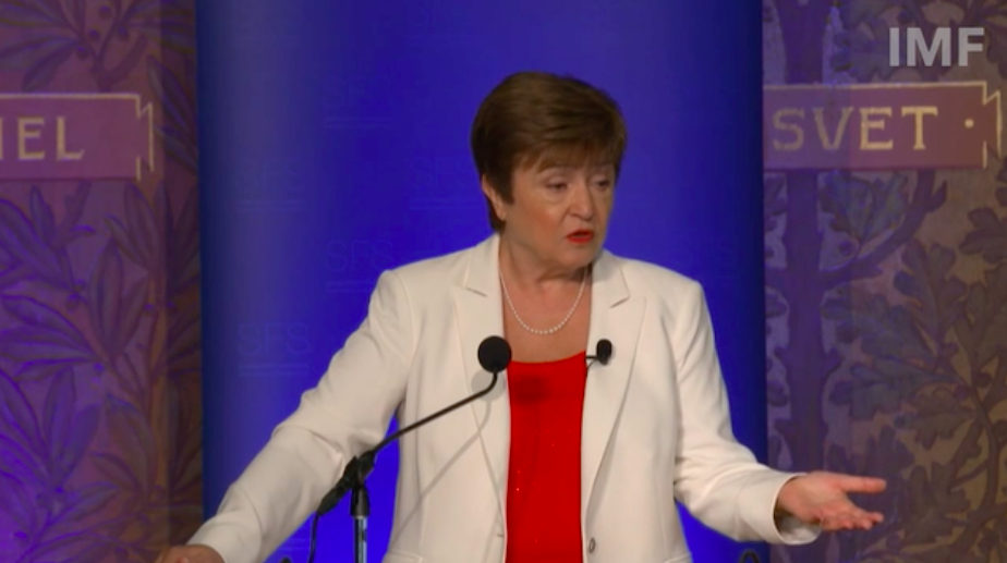 10月6日,国际货币基金组织(IMF)官网发布了IMF总裁克里斯塔利娜•格奥尔基耶娃在乔治城大学的演讲《在一个更加脆弱的世界中勇敢前行》。格奥尔基耶娃在演讲中表示,鉴于全球前景日益黯淡,需要采取紧急行动稳定经济。