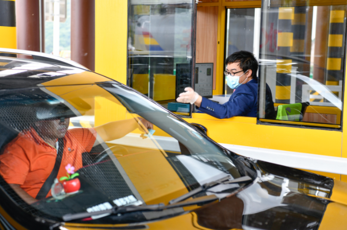 司机正在通过收费站 图片来源:新华社记者 杨文斌 摄