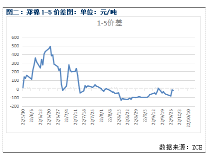 9月28日收盘,郑棉2301-2305合约价差为-15元/吨,价差较上一交易日下跌5元/吨。