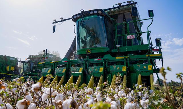 采棉机是高端农机的重要代表。近年来,国内一些大型农机制造企业投身采棉机研发制造。目前,国产三行、六行圆捆打包采棉机已成为新疆棉田里的重要帮手。