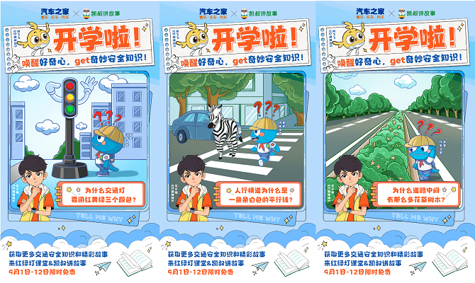 汽车之家以红绿灯课堂为主阵地,重视趣味、实用内容的打造,持续输出交通基础知识、步行、骑行、规避道路风险等安全知识相关的精品视频课程,并深入开展儿童交通安全专项活动。今年9月开学季,红绿灯课堂跨界携手儿童内容领域佼佼者——凯叔讲故事,吸纳更多交通安全主题内容合作,共同聚焦交通安全,激发儿童对交通安全知识的好奇与兴趣。