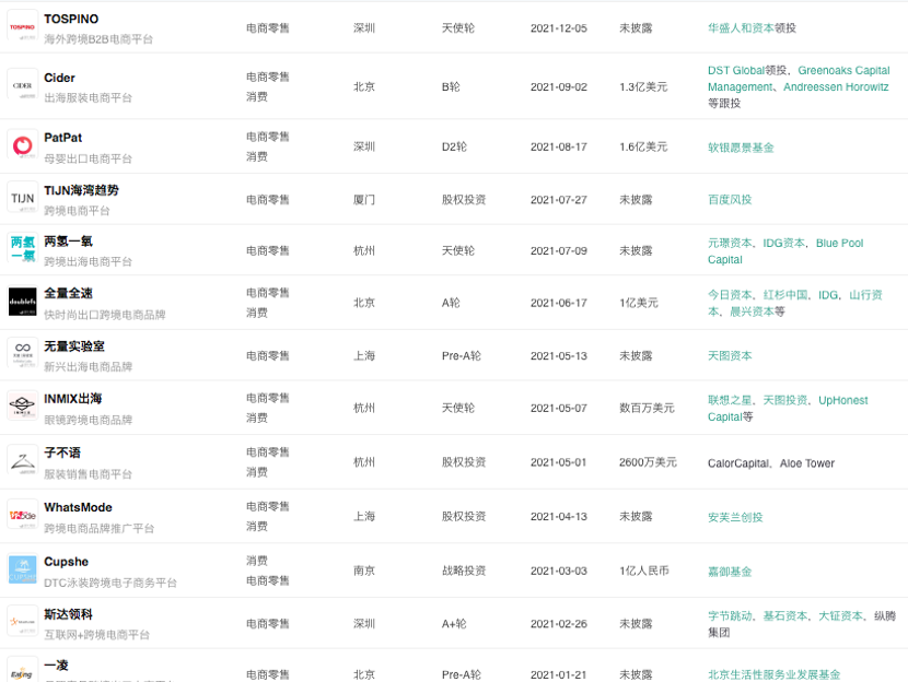 无数中小卖家,甚至大厂,都想做出第二个SHEIN。2020-2021年,出海电商平台频繁获得融资。《天下网商》根据烯牛数据等来源的不完全统计,有至少20家出海电商平台获得融资,规模至少10亿美元。