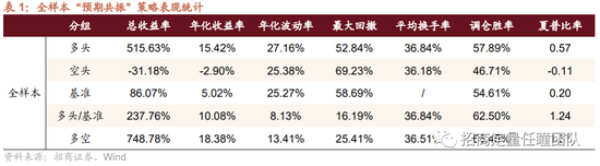 “预期共振”行业轮动策略整体表现较为稳健,2010年以来,行业多头组合年化收益率达到15.42%,夏普比率为0.57。