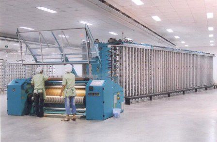 (有些面料的纱线还需要加捻,在织造前,纱线要拿到倍捻机上加捻)
