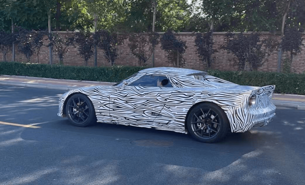 从谍照看,新车覆盖严密的伪装,但是依然能够看清楚超跑的模样,采用扁平化的车头、低趴的车身姿态、双门两座等。前脸采用封闭式格栅,表明其纯电版身份,还配备犀利的三角形大灯组,带有铲型结构的前唇,看起来很有攻击性。前风挡玻璃辨识度也很高,展现出满满的战斗姿态。