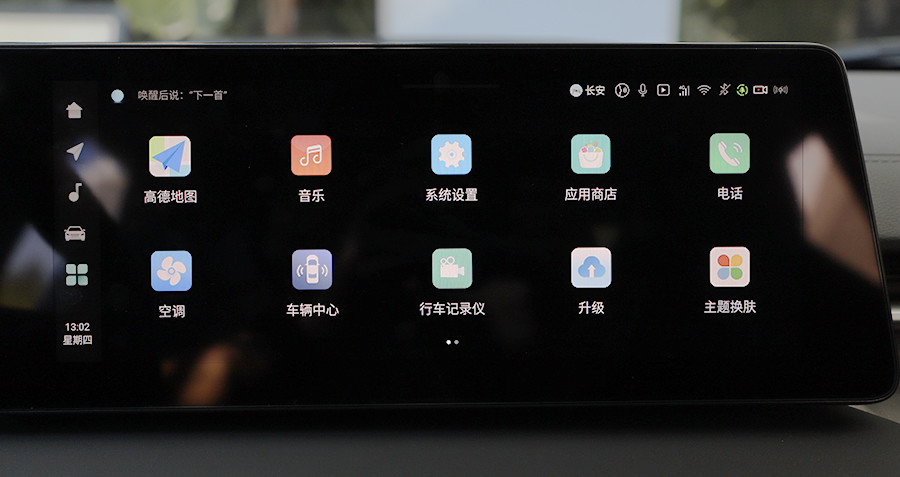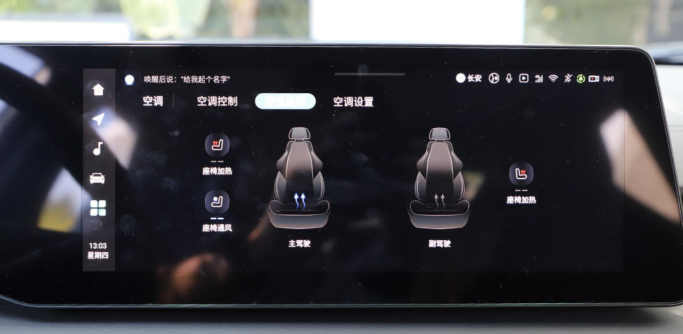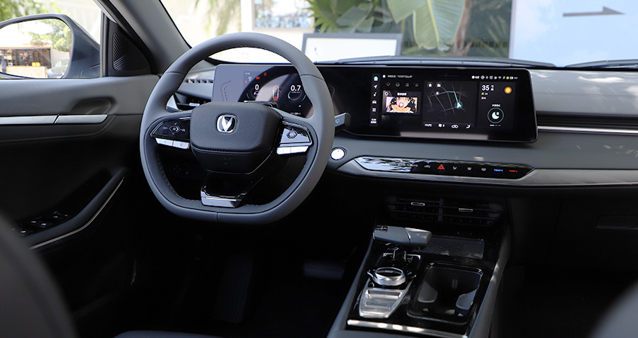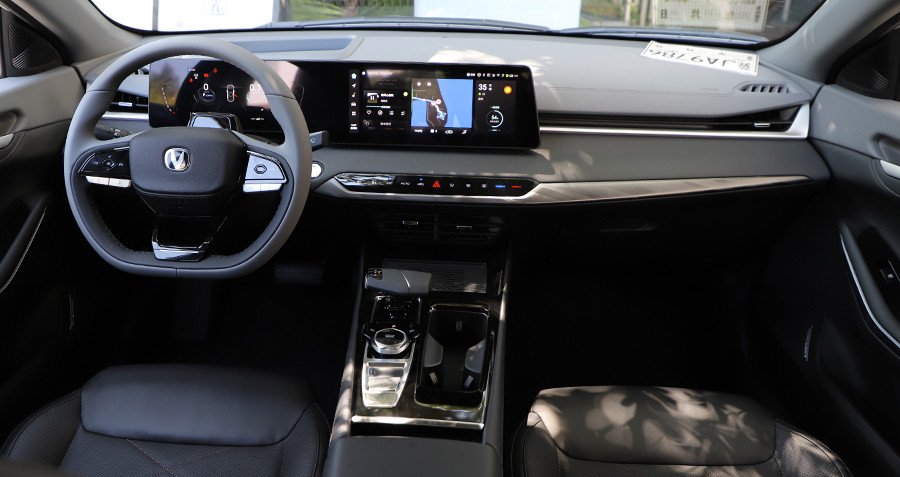 在科技氛围上,7英寸高清全液晶仪表+12.3英寸多媒体屏幕组成的双联屏最先引入眼帘,整体显示效果以及UI设计简洁易懂。使用体验来说,地图导航反应快速,智能语音助手通过“你好,小安”可唤醒,辨识度很高,日常音乐、空调等也能快速做出反应。该车机内置8666平台高性能硬件及飞鱼2.5生态系统,虽不是目前主流的8155芯片,但就长安旗下车型近几年的表现来看,整体在软件方面的调校水准来看,不会让人失望。